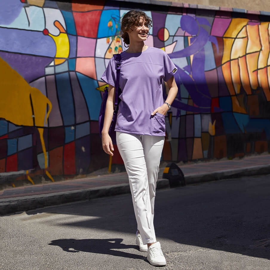 Lila Basic Doktor Hemşire Medikal Scrubs Takım Lüks Likralı Kumaş Genel Özellikleri