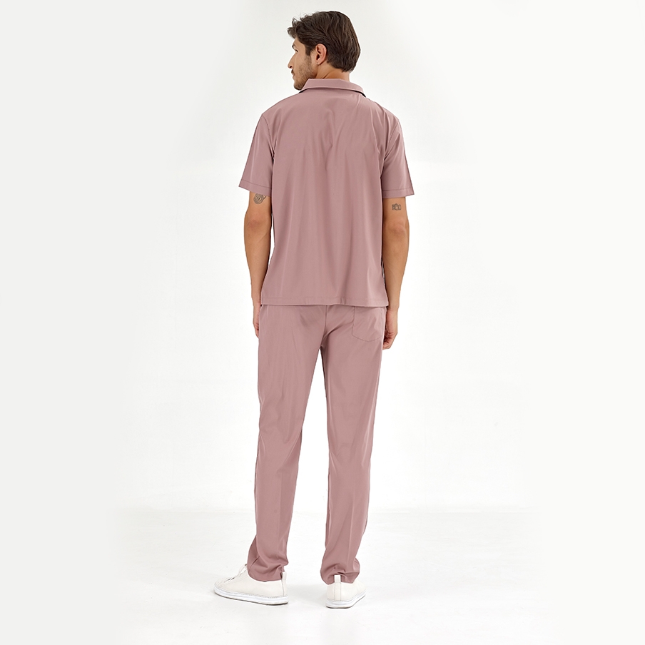 Пыльная роза Медицинский Костюм с Воротником Поло для Врачей и Медсестер Ткань Люкс Лайкра — это хирургический комплект с воротником поло и молнией, разработанный для комфорта и элегантности медицинских работников. Обеспечивает комфорт в течение всего дня благодаря гибкой структуре и дышащей текстуре.