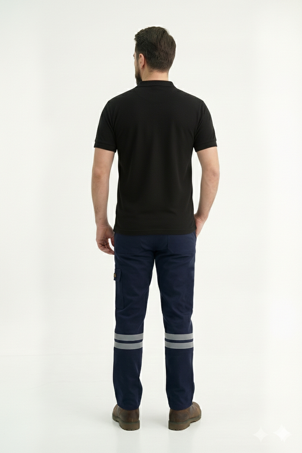 Penye lacoste kumaştan üretilmiş siyah polo yaka kısa kol iş tişörtü. Nefes alabilen, konforlu ve kurumsal kullanıma uygundur.