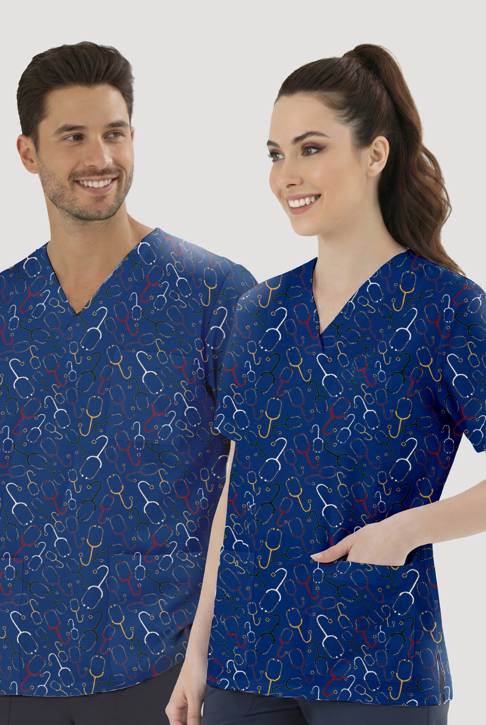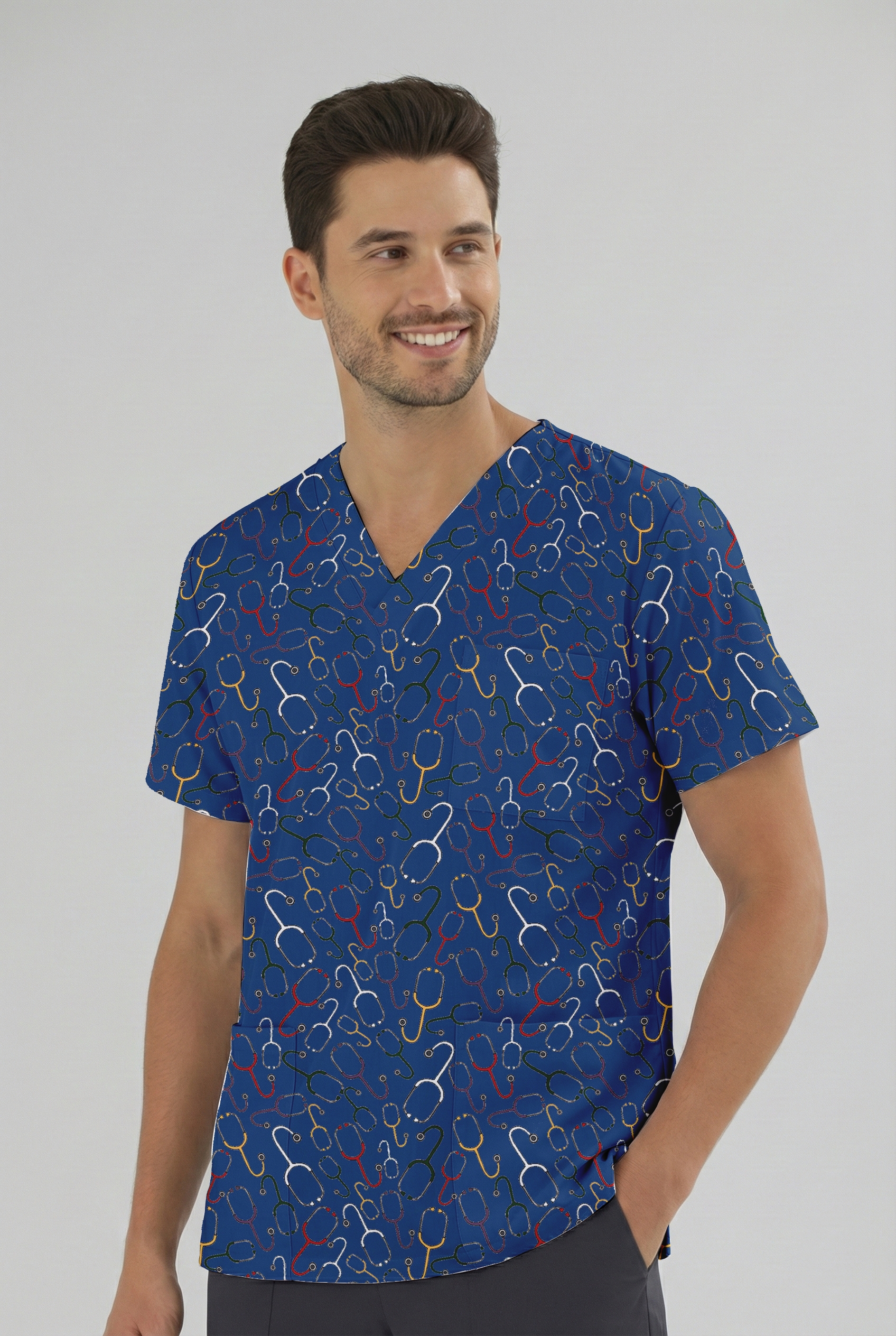 Stetoskop Desenli Tek Üst (Cotton Likra Kumaş)